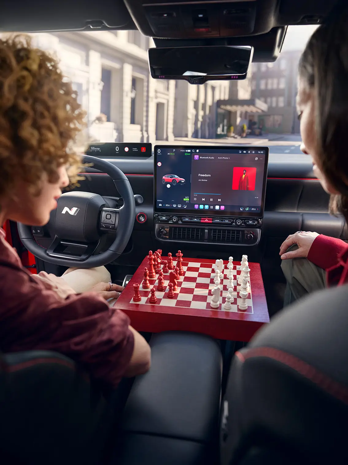 Det nye infotainmentsystemet har tydelig grafikk, oversiktlige skjermer og nettbaserte funksjoner med KI-assistert talegjenkjenning. IONIQ 3 er den første modellen som leveres med Pleos Connect infotainmentsystem i Europa, og setter med det en ny standard i segmentet. Du kan velge skjerm på 12,9 eller 14,6 tommer. På skjermen får du enkel tilgang til bil- og navigasjonsfunksjoner, og du har mange tilpasningsmuligheter.