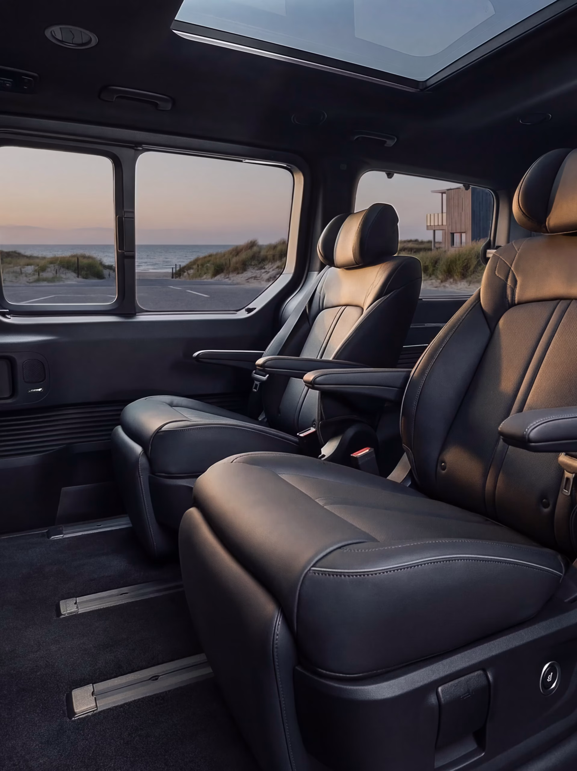 Hvis du setter pris på komfort, er STARIA Electric LUXURY med 7 seter et godt valg. Den romslige kupeen har stor benplass og takhøyde. En fleksibel setekonfigurasjon som kan tilpasses etter behov, gjør at bagasjeromsvolumet kan økes til opptil 435 liter.